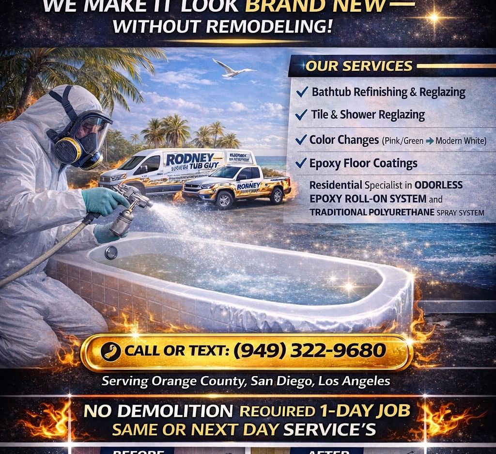 In the beautiful areas of Capistrano Beach, Dana Point, and Laguna Beach, residents often turn to All in 1 coatings for all refinishing needs. If it’s Corona del Mar, Monarch Beach, or Newport Beach, our expert team is prepared to assist. Our services extend to Newport Coast, Balboa Island, and Coto de Caza, ensuring your surfaces shine like new. San Clemente, Aliso Viejo, and San Juan Capistrano are also within our reach, along with Huntington Beach and Mission Viejo. From Orange to Irvine, including Three Arch Bay, Rancho Santa Margarita, Ladera Ranch, Costa Mesa, and Emerald Bay, A-1 Tub and Tile Refinishers LLC provides one way refinishing for all your bathtubs and tiles. Our quality refinishing services also cover Foothill Ranch, Cypress, El Toro, Fountain Valley, Fullerton, Anaheim, Anaheim Hills, Brea, Buena Park, Garden Grove, La Habra, La Palma, Laguna Hills, Laguna Niguel, Lake Forest, and even Seal Beach, ensuring exceptional quality throughout the region.