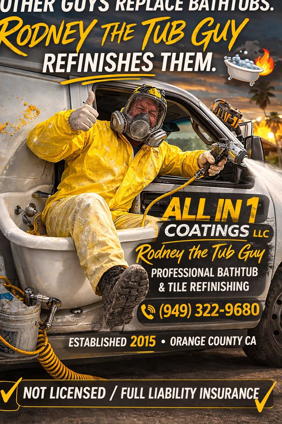 Owner-Operated by Rodney "The Tub Guy," All in 1 coatings has been delivering SATISFACTION RESULTS SINCE 2012. We provide ALL IN 1 COATINGS for professional, courteous, honest, and knowledgeable service. With over 12 years in the business, we specialize in all refinishing needs, offering one way refinishing solutions that exceed expectations.
